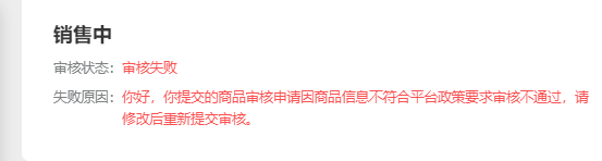发布商品显示审核失败,原因是你好,你提交的商品审核申请因商品信息不符合平台政策要求审核不通过,请修改后重新提交审核。平台政策要求是啥?