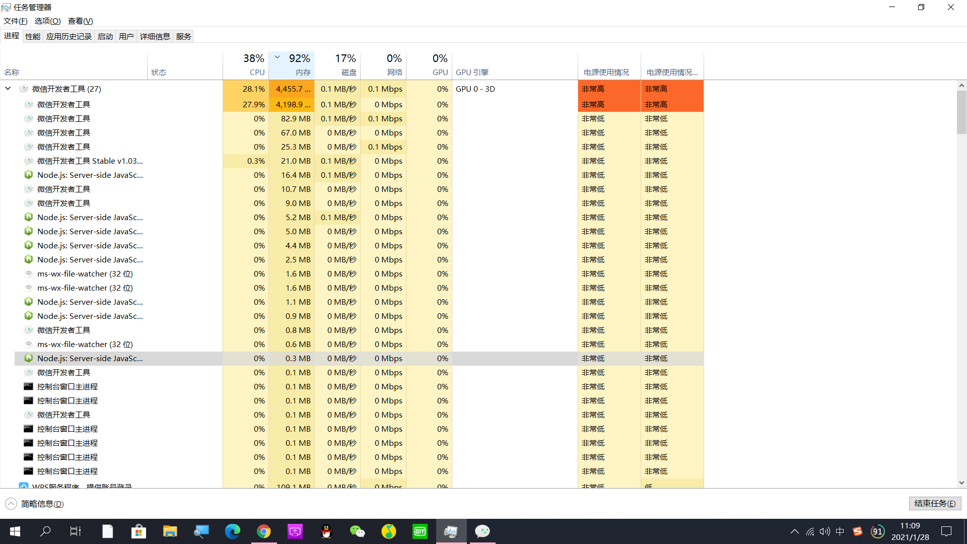 今天早上起来启动开发者工具, 直接模拟器一片空白, 我以为是代码有问题, 但检查完也没发现问题, 编译也是通过的, 检查了内存消耗情况发现是开发者工具消耗了大量内存, 导致无法正常启动