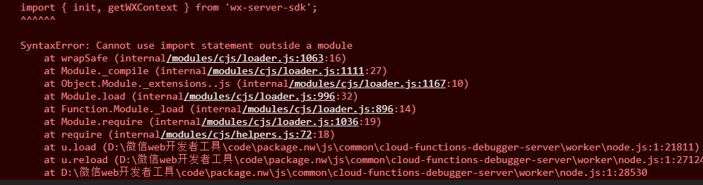 看样子官方是打算在云函数文件里用Import的,但是实际执行还是会报错