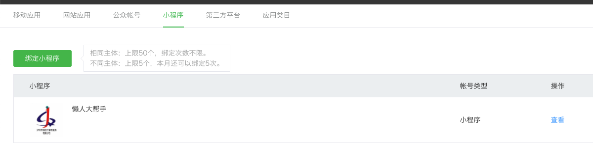 只要绑在一个开发者帐号下,即使主体不一样,也允许获取到统一的unionID。绑定同一个微信开放平台帐号下,同一个用户的unionID如果不同的,原因只能是开发者搞混openid。openid要对应所属的AppID,才会相同。 举个例子:1.小程序AppID:wxc104eb635b8cxxxx ——帐号A,公众号AppID:wx311a2a9a8e1dxxxx ——帐号B,2.核实帐号A和帐号B 绑定同一个微信开放平台帐号是:xxxxxx@sina.com ,所以用一个用户的unionID相同,3.而开发者所反馈的出现unionID不同,原因是:所提供的openid不属于帐号A,也不属于帐号B,而是属于帐号C或帐号D,而帐号C或帐号D并没有绑定在同一个微信开放平台帐号下,所以unionID不同