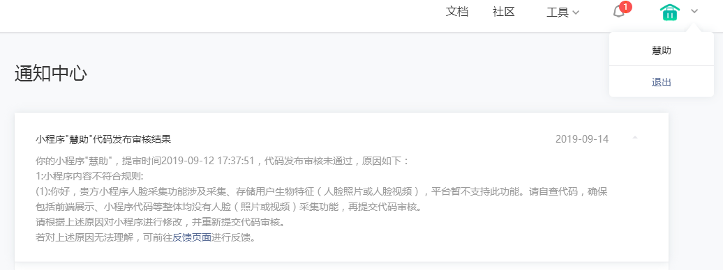 之前都没有审核失败哦?怎么这次就这样呢?我们人脸采集是跳转到公安部三所小程序完成的(也是微信原生接口),也不行吗?而且我们目前的类目也在范围内哦(酒店服务)。