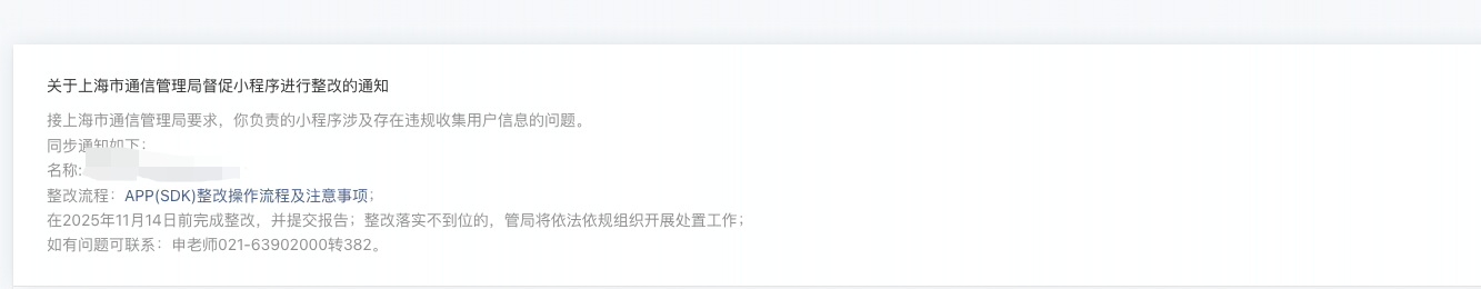 突然收到违规通知,也不说哪里违规了,电话也打不通,微信小程序后台隐私采集里也删除不了未用的采集,请问是哪里违规了呢?APPID: wx3e18fabc7f4c5202