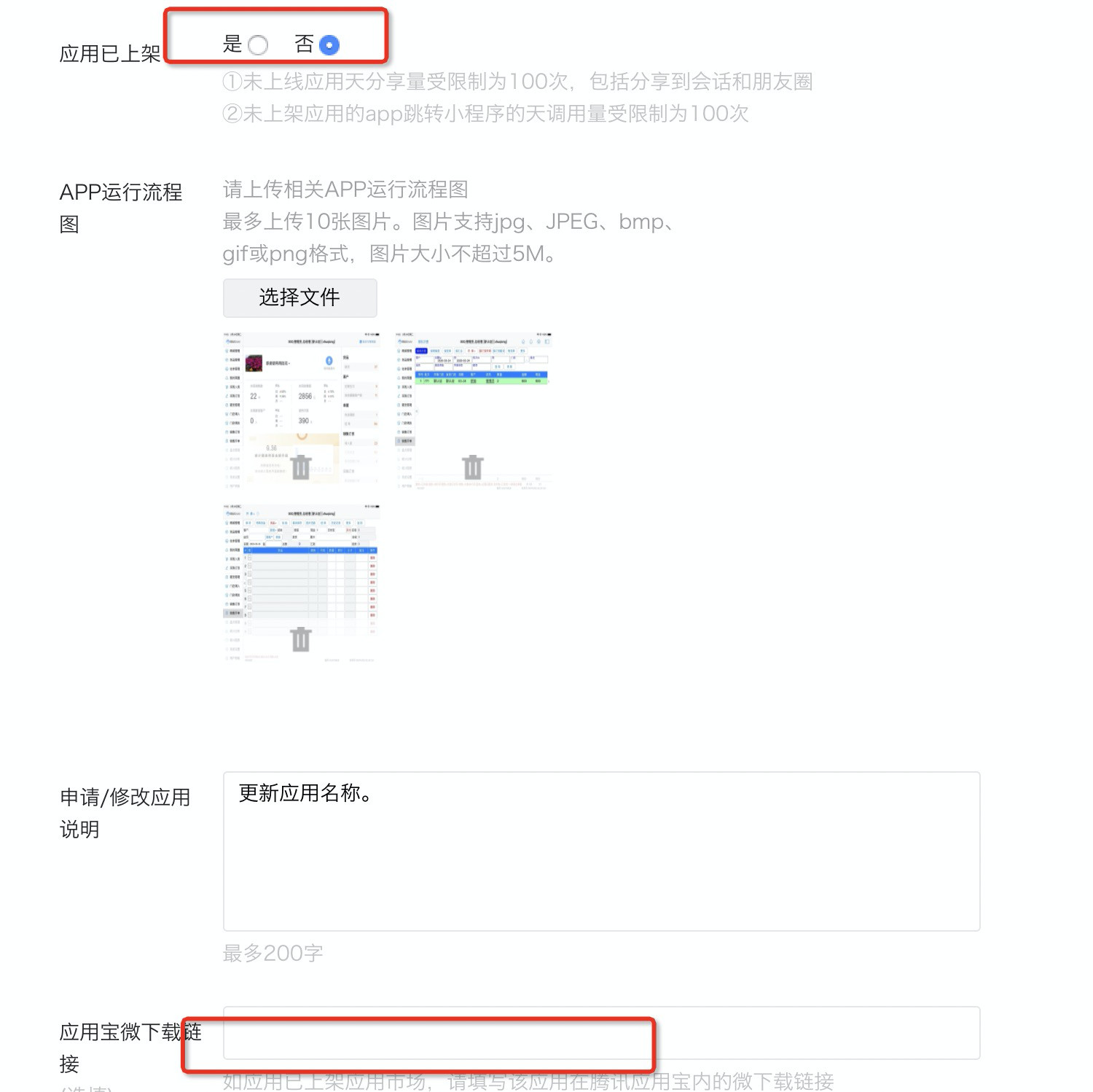 填了已上架,就必须填微下载链接,意思是不在应用宝上架就只能用被限制的微信分享功能吗?