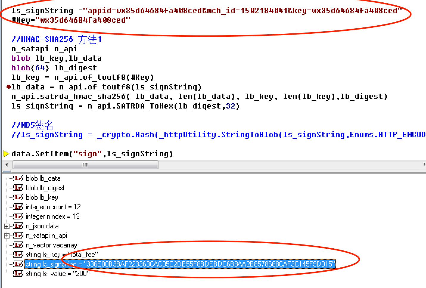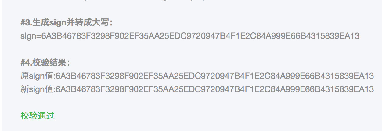 3) 如果和微信的在线签名工具不一致,说明程序有错误,常见的错误可能是: