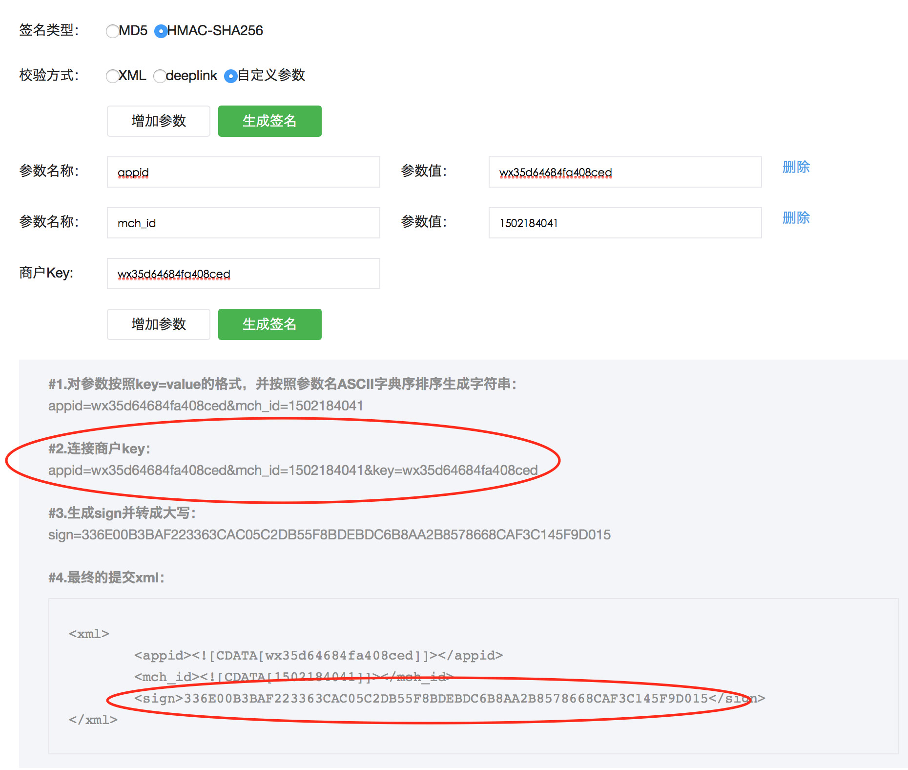 1) 使用微信的在线签名工具检查签名是否和程序生成的一致