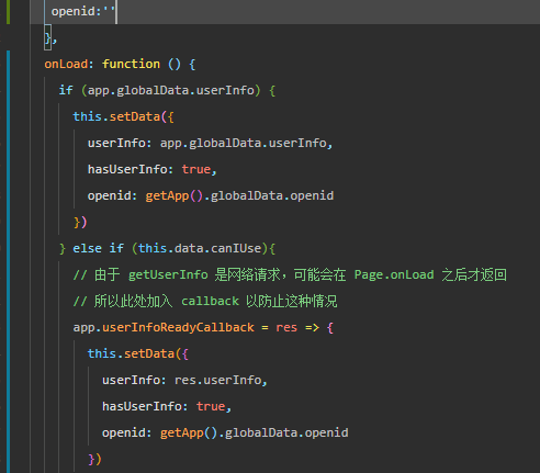 db.collection('user').doc(openid).get().then(res => { //用户存在则更新 userData.lastTime = db.serverDate() //最后更新时间 db.collection('user').doc(openid).update({ data: userData }) }).catch(err => { //用户不存在则新增 userData.createTime = db.serverDate() //创建时间 userData._id = openid db.collection('user').add({ data: userData }) })