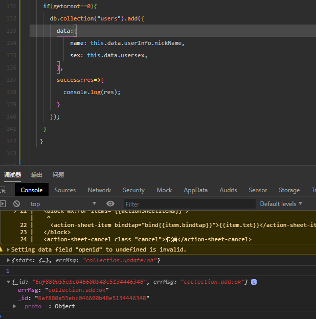 我需要的目的是如果云数据库不存在我的openid的信息,则进行添加,如果存在就更新那一条而不添加新的