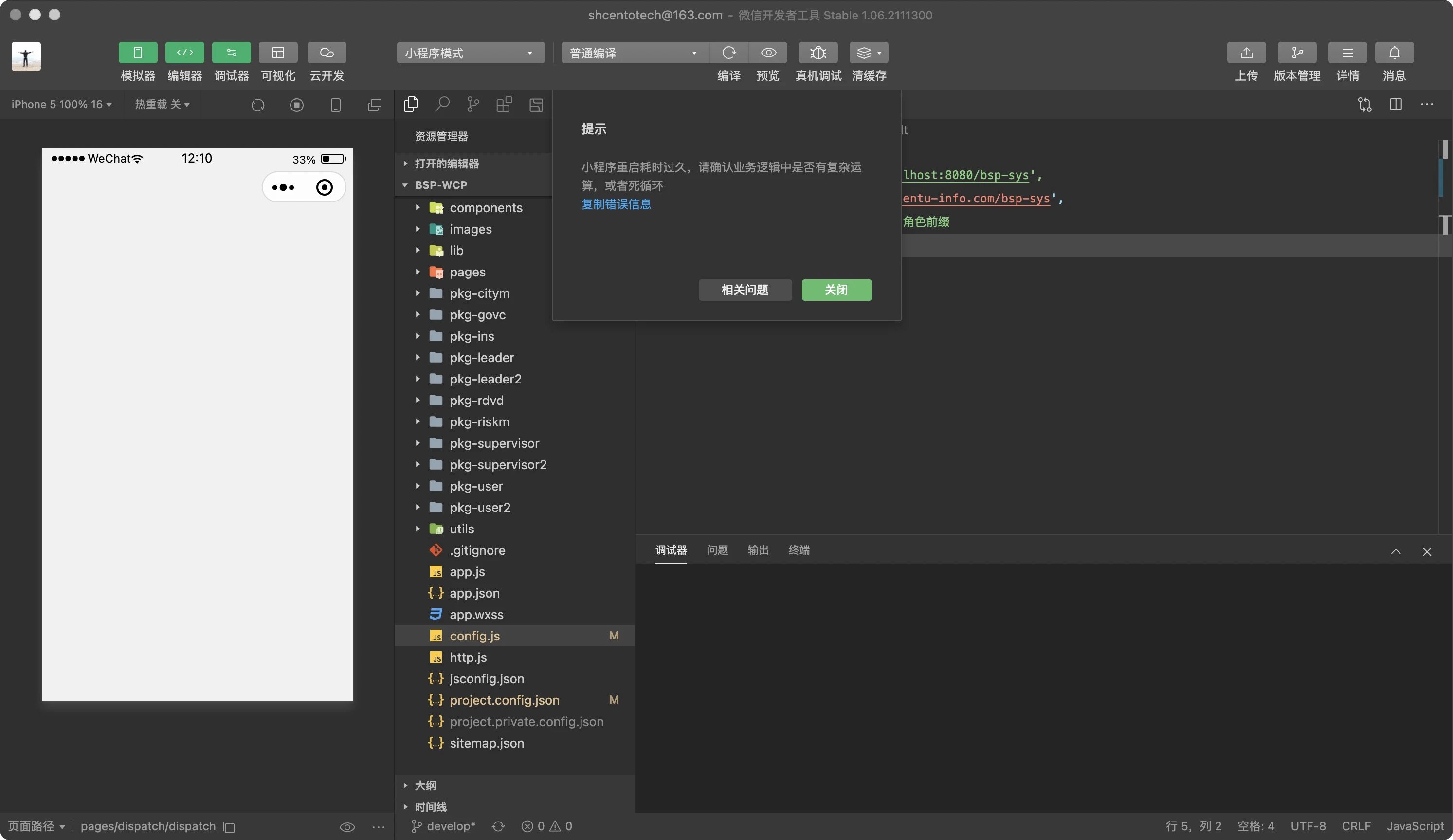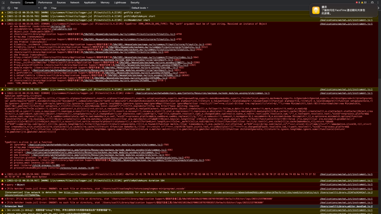 微信开发者工具macos最新稳定版arm架构编译小程序后白屏无法进入预览界面,长时间卡顿报错,且无法存入storage。然后我清除了编译缓存,可以进入登录界面,但是无法获取手机号,点击获取手机号,单击允许,无反应,再次编译,又白屏,连调试器都不显示了。