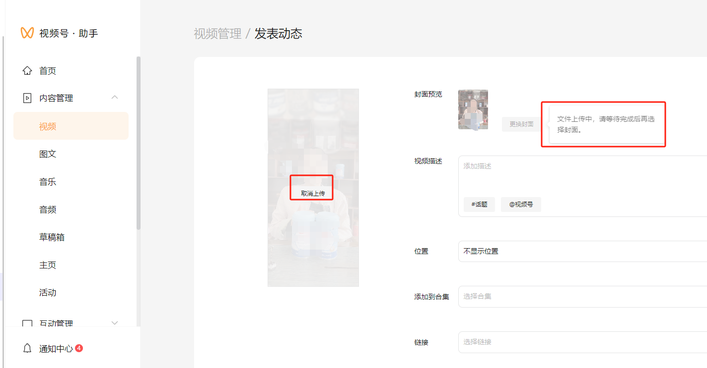 什么情况?本来用的第三方分发软件 ,到视频号这里始终上传不了视频、。那就想着来官方网站上传,结果还是卡在上传这里,一直提示正在上传中。