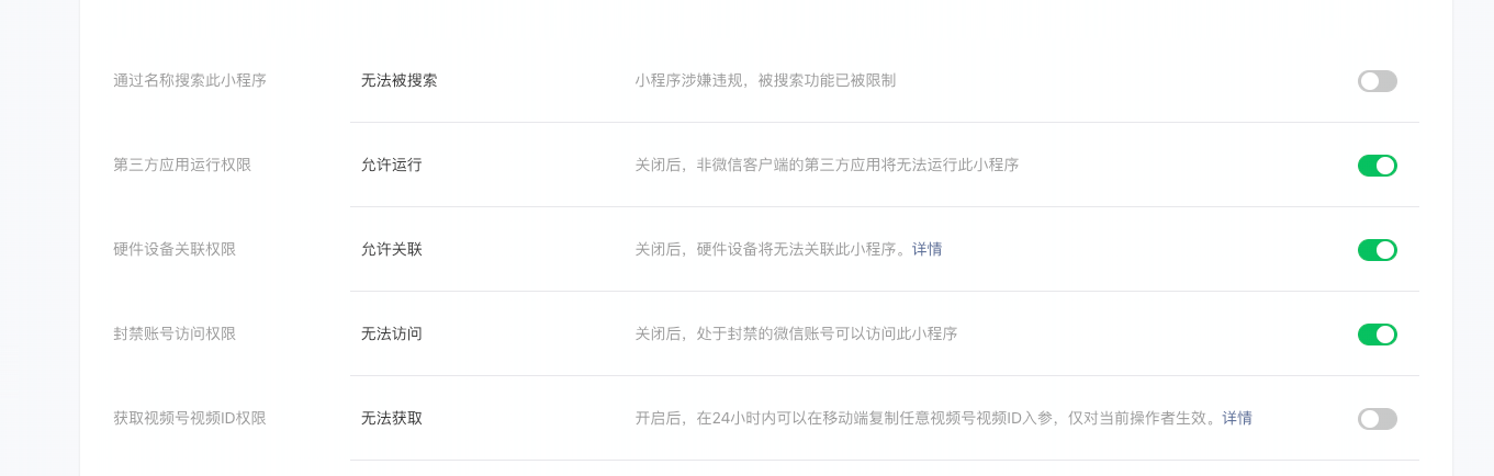 你好,若小程序搜索不到,建议先在MP后台自查以下信息: