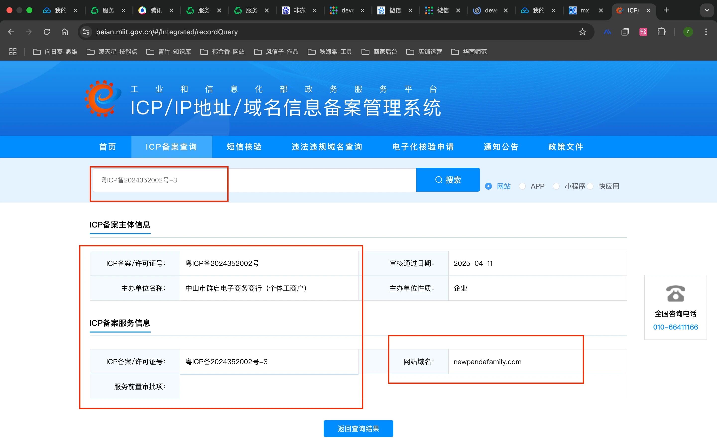 我的域名newpandafamily.com在腾讯云完成注册,服务器同样选用腾讯云服务,备案工作也已顺利办结,备案编号为粤 ICP 备 2024352002 号 - 3 。此域名关联的服务 “新世代熊猫萌盟”,核心功能是为用户提供信息浏览服务。