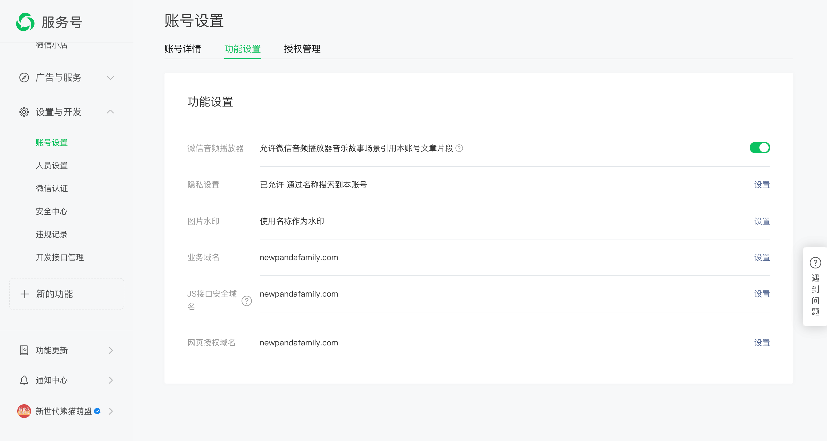 二 认证的公众号(新世代熊猫萌盟)已经配置js
