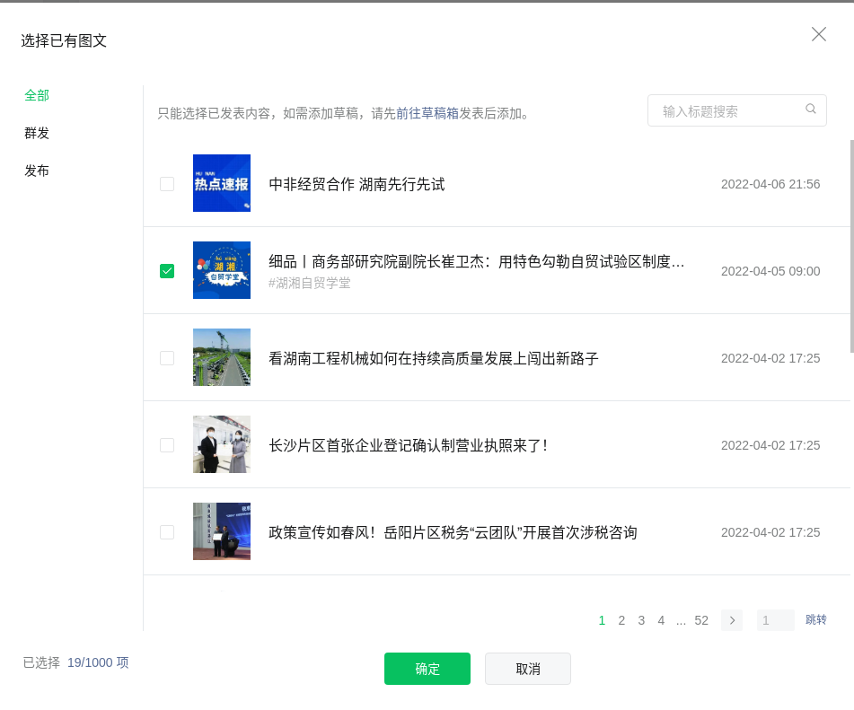 话题标签内添加已群发的内容,但是在“选择已有图文”中找不到这篇已群发的图文。