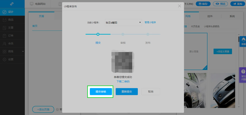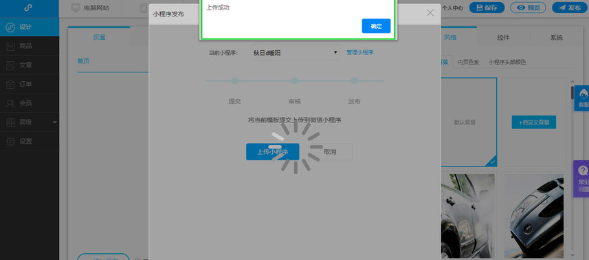 点击确定后,就会提示提交成功-进入小程序,如图9。