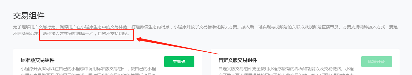 手贱了,没看说明,小程序不小心开通了“标准版交易组件”,开通了以后才发现只能选一种。