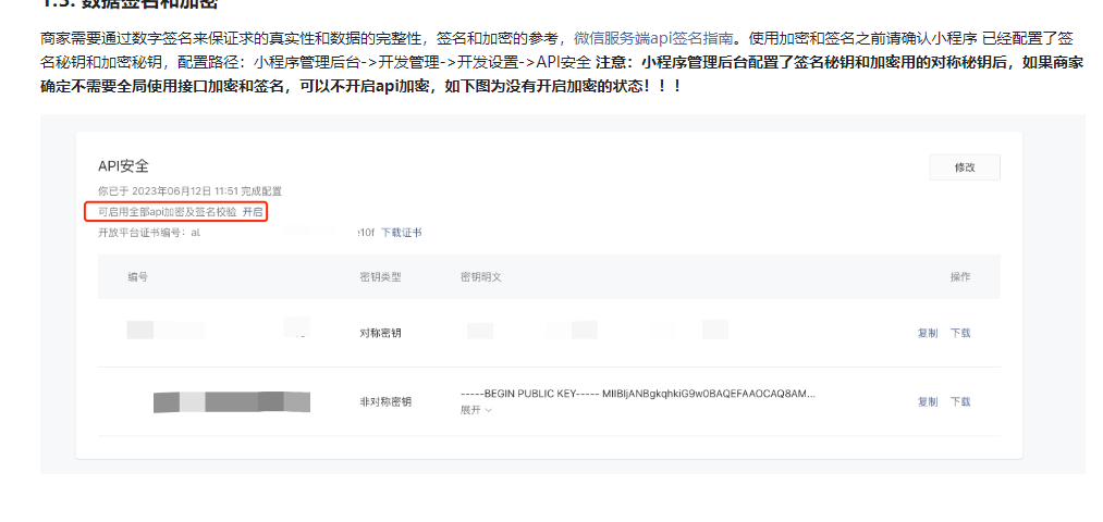 文档中并没有提出,签名所需的私钥如何获取,目前看到只有对称密钥还有Public key