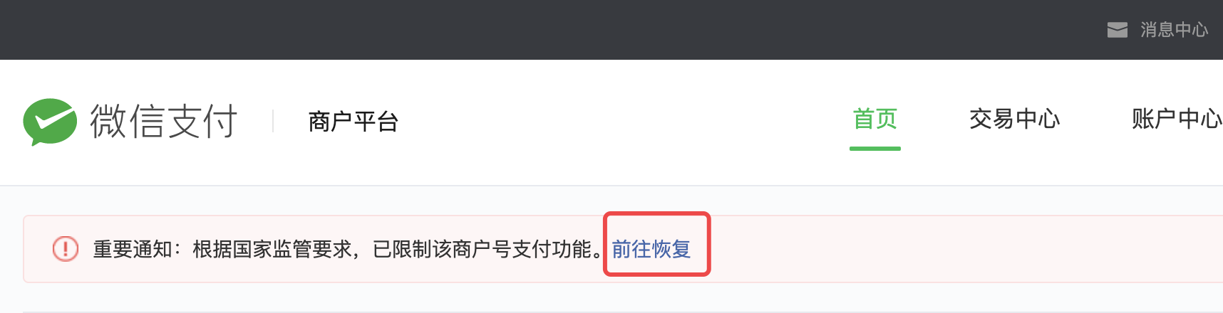 长时间未交易被冻结,可以自行登录商户平台,在首页提交恢复申请,或者在消息中心找到冻结通知,按通知指引进行恢复