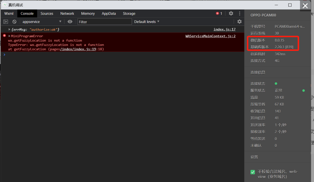 手机微信最新版本,开发者工具最新版本,电脑调试有结果,真机调试报错