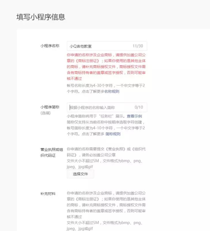 我在外网发宣传广告的时候都是用:“小Q吉他教室” 这个名字的,我们的淘宝店名,腾讯课堂教育机构名字都是这个。但是现在小程序却说这个名字涉及企业商标,怎么办呢?