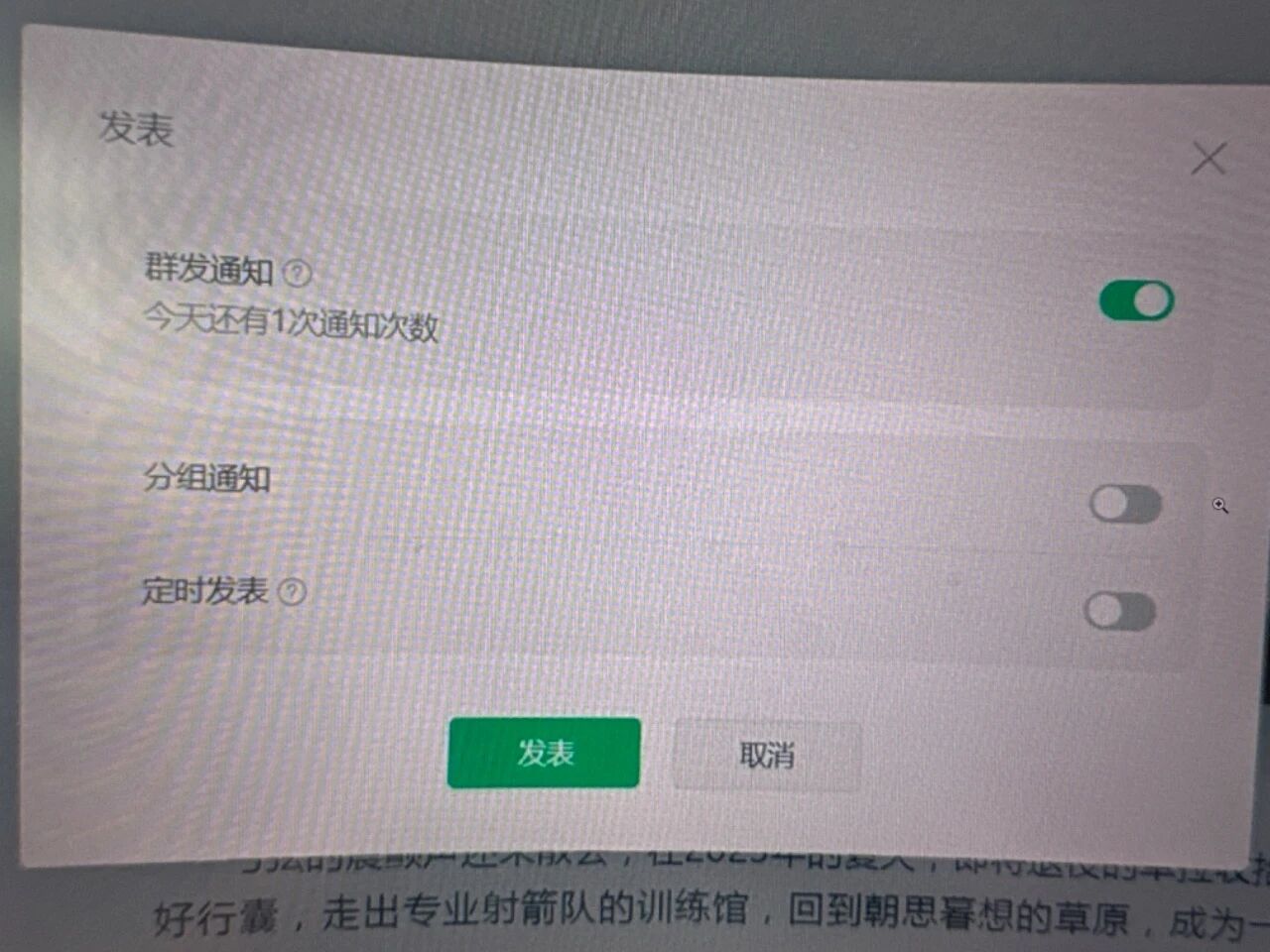 微信公众号群发通知次数怎么增加?草原明珠锡林浩特之前是不限制每天增加群发通知次数的 你可以从后台看记录 最近迁移了新的账号 每天只有一次群发通知次数 这个怎么解决 你们官方规则不是说 已认证的政府与媒体类订阅号:每日多次群发次数 我们草原明珠锡林浩特符合这一条 请留一下联系方式 打字描述不够完整 打电话询问一下