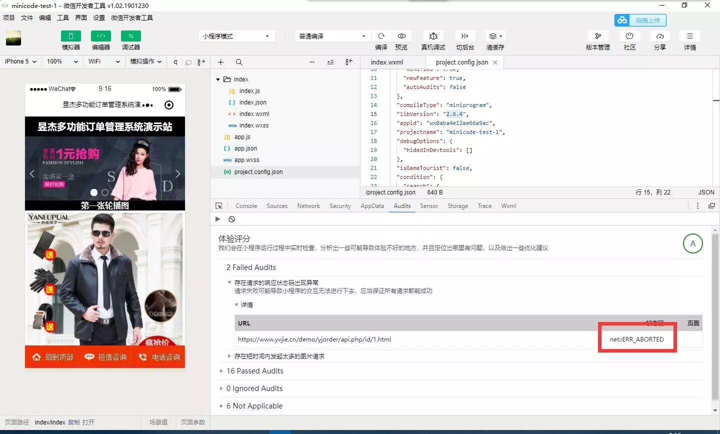 我用微信开发者工具对我的web-view页面进行了一个评分,发现报状态码异常:net::ERR_ABORTED,请问是什么原因?我页面的状态码明明返回的是200呀。