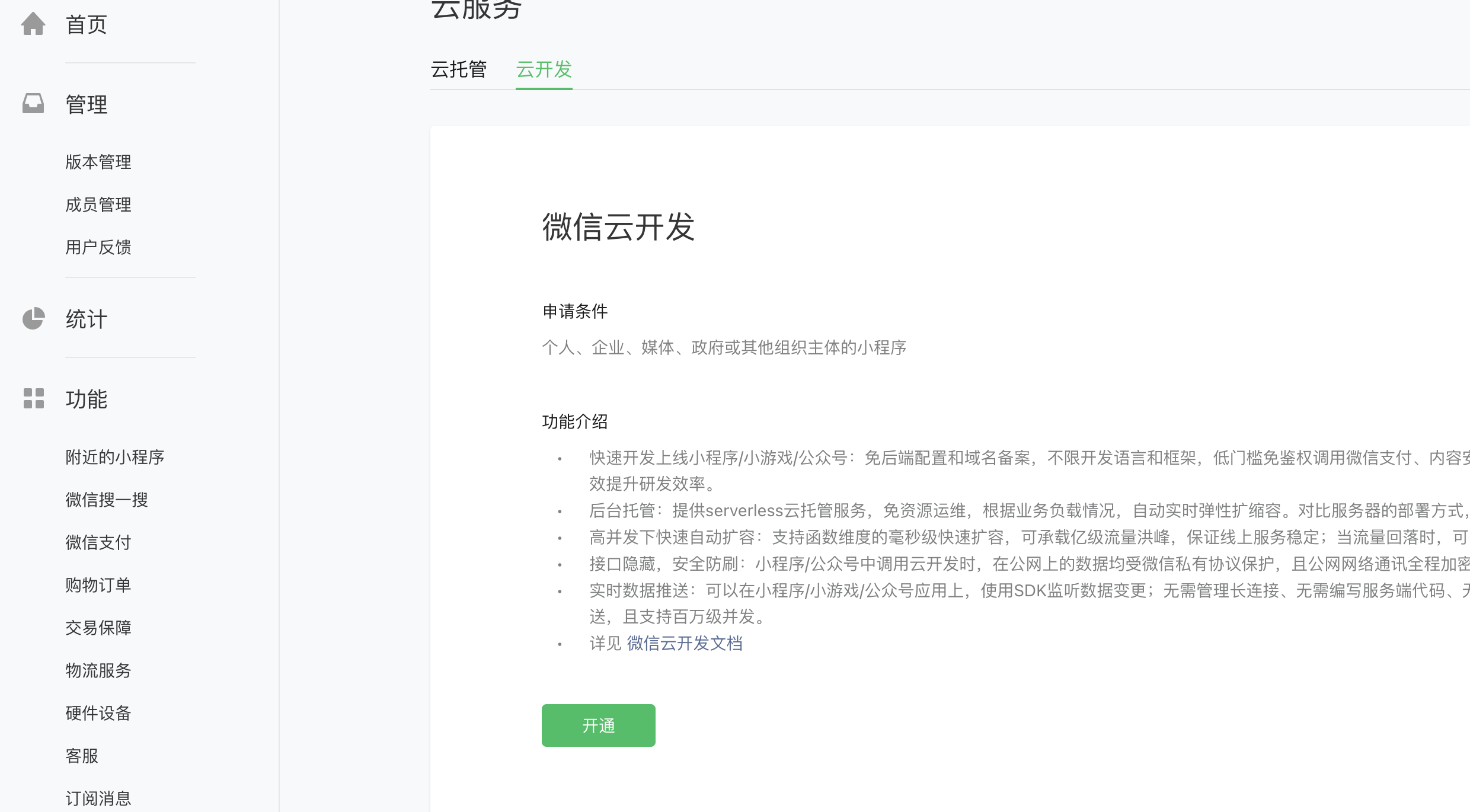 手机端 开通试试 小程序 微信云开发