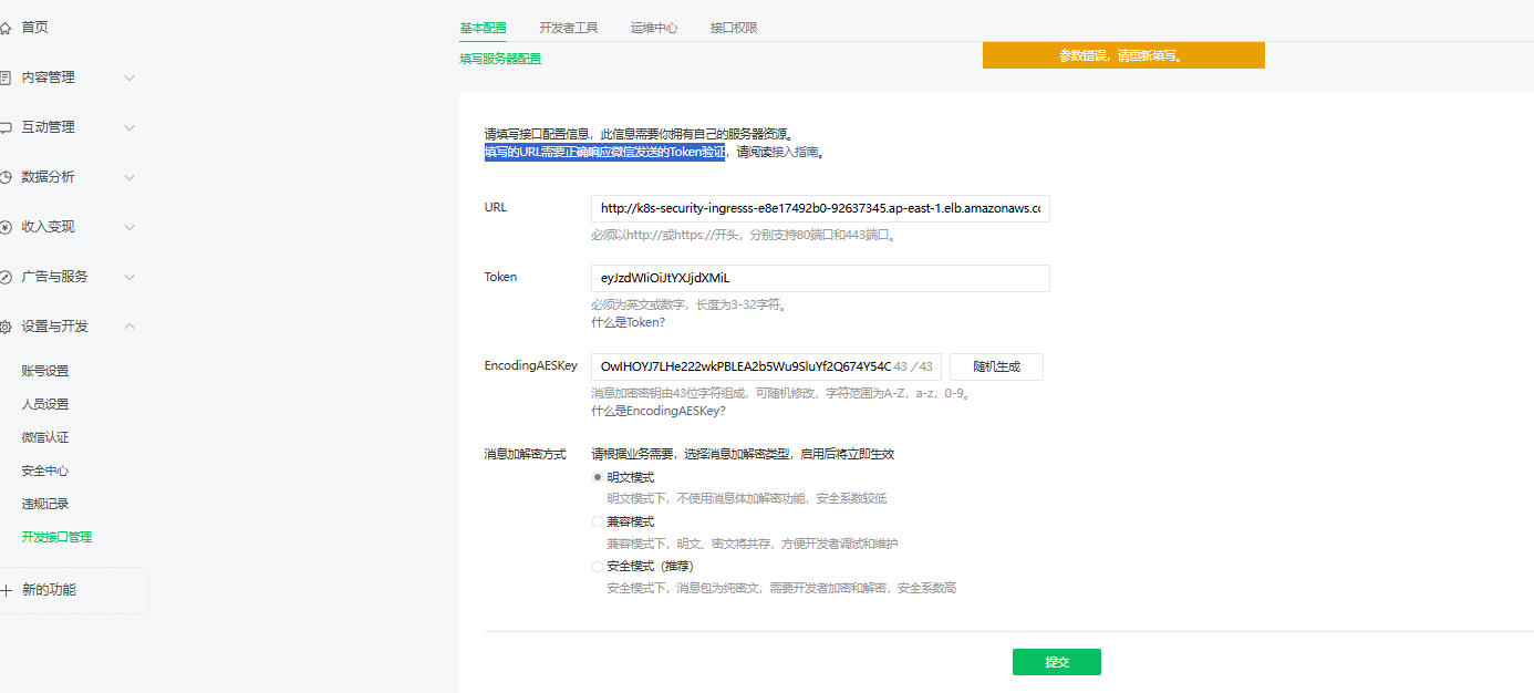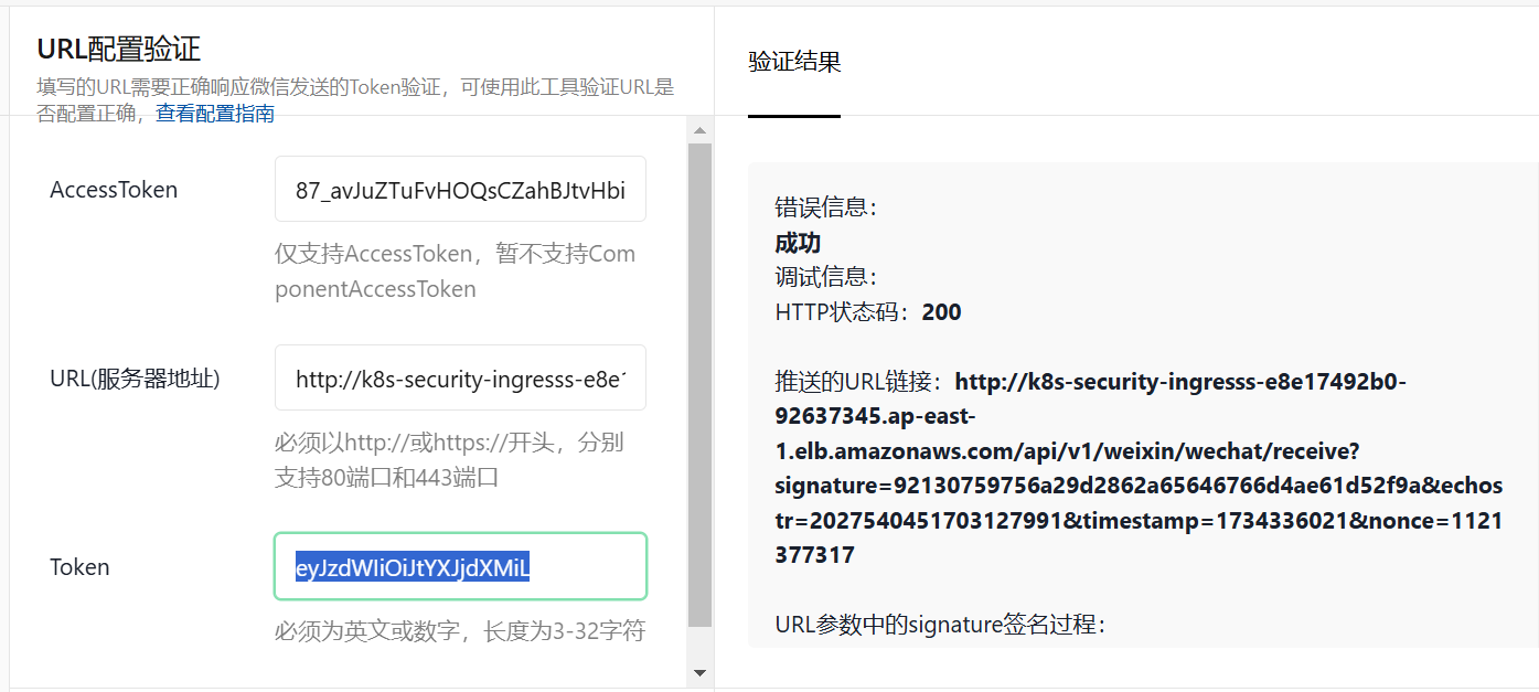 @GetMapping("/wechat/receive") public ResponseEntity check(@RequestParam String signature, @RequestParam String echostr, @RequestParam String timestamp, @RequestParam String nonce) throws AesException { log.info("GET 收到通知, signature:{} echostr:{},timestamp:{},nonce:{} ", signature, echostr, timestamp, nonce); List<String> list = new ArrayList<>(); list.add(echostr); list.add(timestamp); list.add(nonce); wxUserService.checkReceive(signature, echostr, timestamp, nonce, ""); return ResponseEntity.ok(echostr); } @PostMapping("/wechat/receive") public ResponseEntity<String> receiveEvent(@RequestBody WxEncryptEvent wxEncryptEvent, @RequestParam String signature, @RequestParam String echostr, @RequestParam String timestamp, @RequestParam String nonce, @RequestParam String openid, @RequestParam String encrypt_type, @RequestParam String msg_signature) { log.info("收到通知body:{} echostr:{} timestamp:{} nonce:{} openid:{} encrypt_type:{} msg_signature:{}", wxEncryptEvent, echostr, timestamp, nonce, openid, encrypt_type, msg_signature); try { wxUserService.receiveEvent(wxEncryptEvent, echostr, timestamp, nonce, openid, encrypt_type, msg_signature); return ResponseEntity.ok(""); }catch (Exception e){ log.error("", e); } return ResponseEntity.status(HttpStatus.UNAUTHORIZED).body(""); }