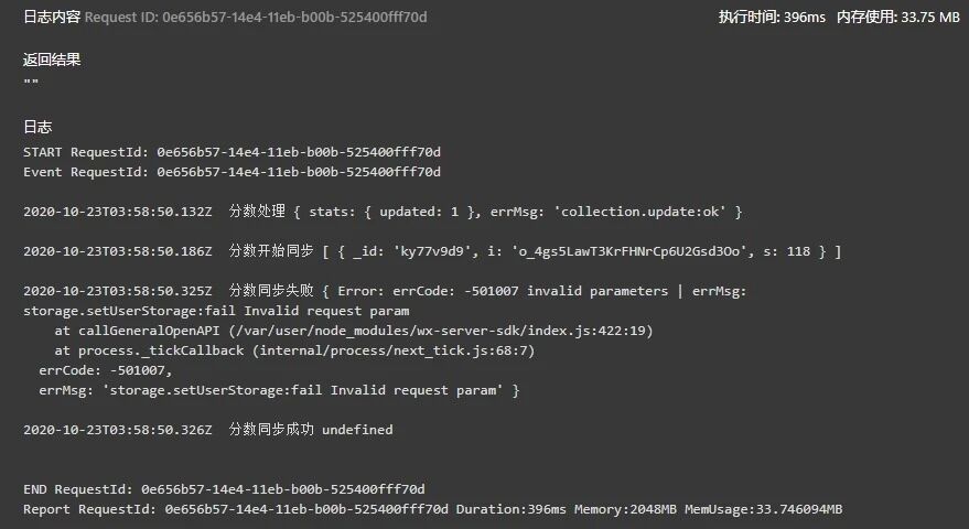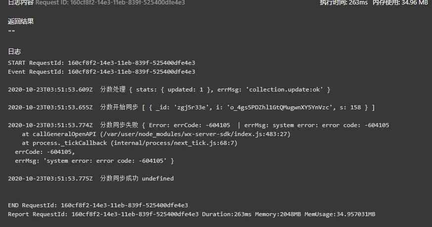 一个是服务端调用云函数,传入了玩家的openid,同步分数失败