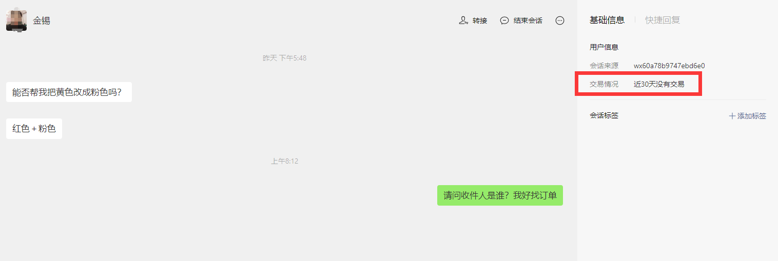 这种顾客过来问,别人如果不告知收件人,根本就不知道怎么回复,每次都要问下别人她的订单收件人或者订单号,真的是脑残的设计!!!!!