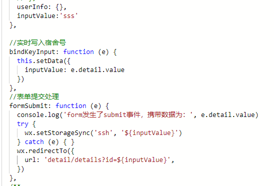 varid=this.data.inputValue;wx.redirectTo({url:'detail/details?id='+id})