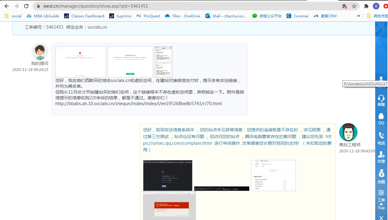 socialx.cn,我在今年3月6日买的,之后一直没使用。本月11月13日ICP备案并通过,备案号是 沪ICP备19019576号-2,但接入微信支付时发现被上了黑名单。原因是因为这个链接:http://bbabs.ah.10.socialx.cn/shequn/index/index/i/ee195268be8b5743/r/70.html,但我服务器上根本没有这个链接,而且这个链接已无法访问,这是之前的域名买家的网站,并不是我的服务器上的。