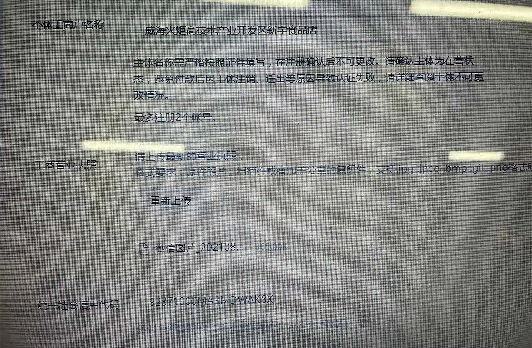 我们在网上找了相关资料,说是有可能营业执照存在变更或者是新注册的,我们的营业执照是个体工商户,是2018年注册,截止目前没有做任何的更改!