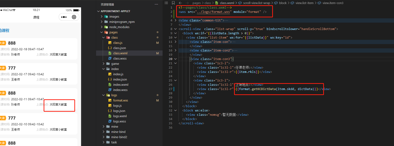 要我写的话,尽量会少用wxs;会将dictData转换成对象。