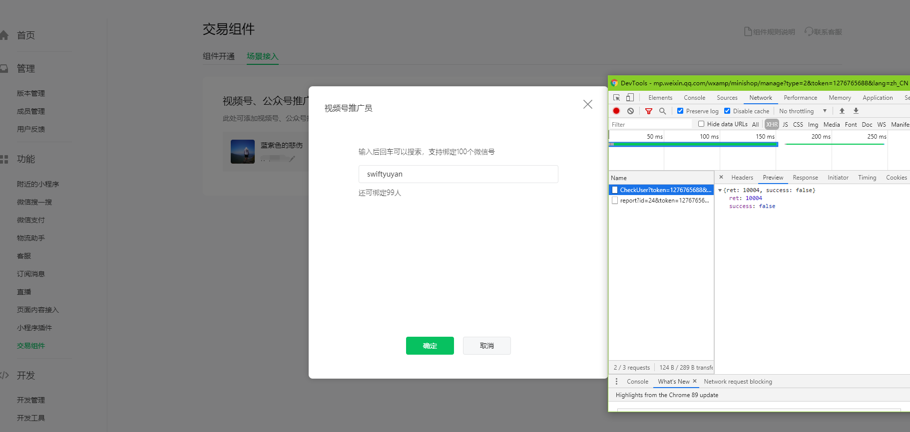之前小程序自定义版本交易组件已经开通成功,并且开发成功,现在后台操作界面变成了初始状态,麻烦帮忙看看什么问题,