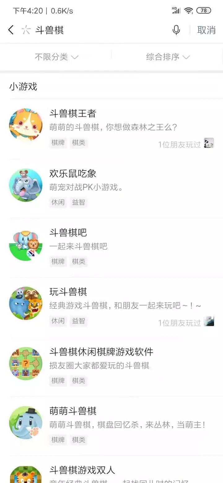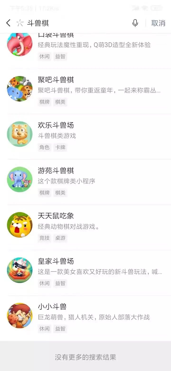 玩家想玩斗兽棋的时候,在微信里面搜搜斗兽棋小游戏,肯定优先考虑到小游戏分类下面找搜索结果,自然被列入小游戏标签的小游戏能获得更多搜索流量,所以我也希望《野兽争霸斗兽棋》能够被列入小游戏分类。