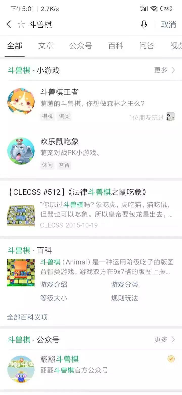 在微信搜索“斗兽棋”关键词的时候,《野兽争霸斗兽棋》小游戏没有被列在小游戏分类里面,而是被列在小游戏里面,这是为什么呢?