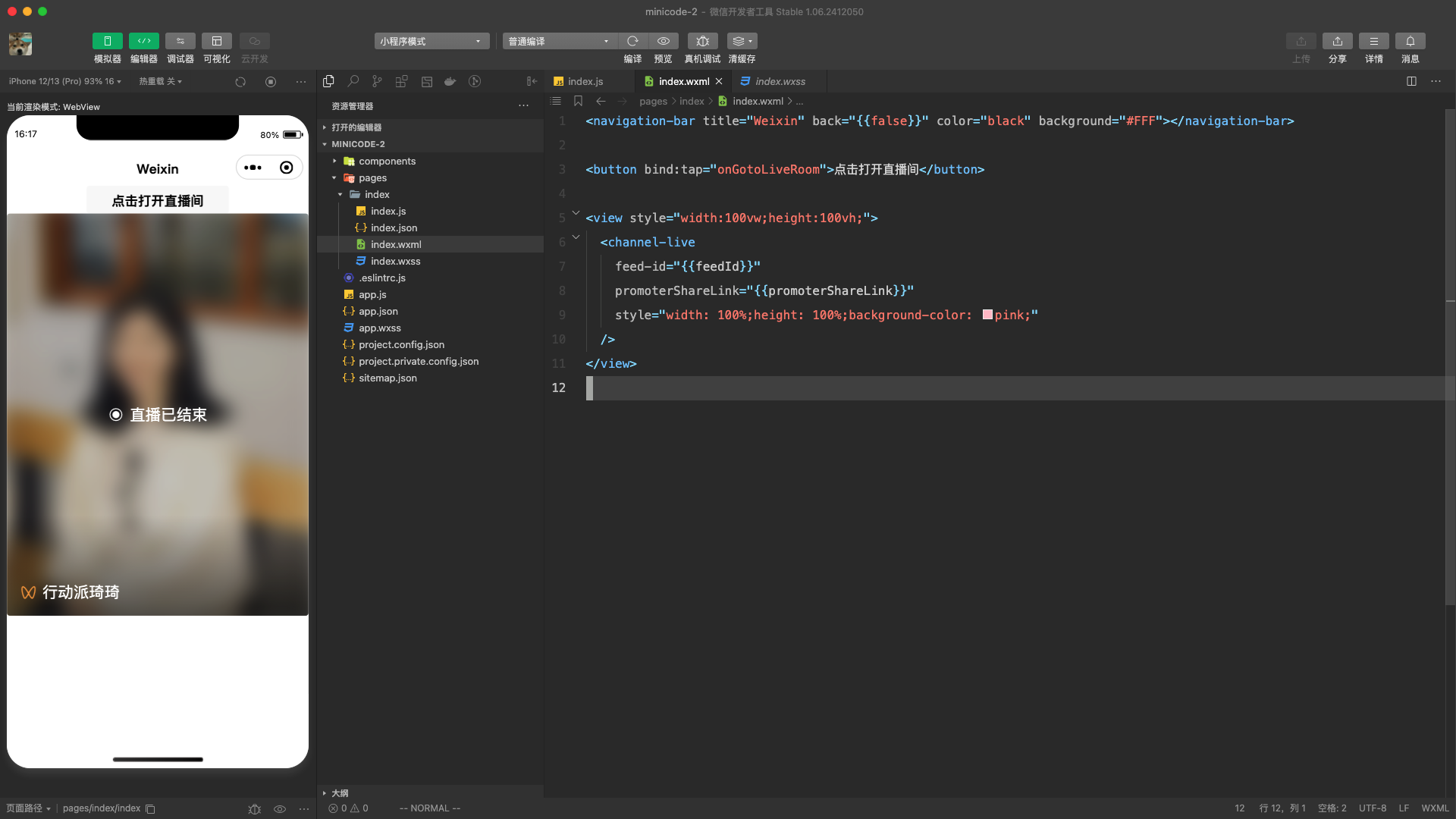<button bind:tap="onGotoLiveRoom">点击打开直播间</button>