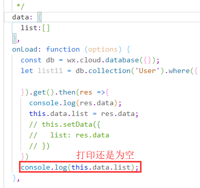 我在data里面定义一个数组,在云数据库查询出来的时候赋值给这个数组 怎么做呀?