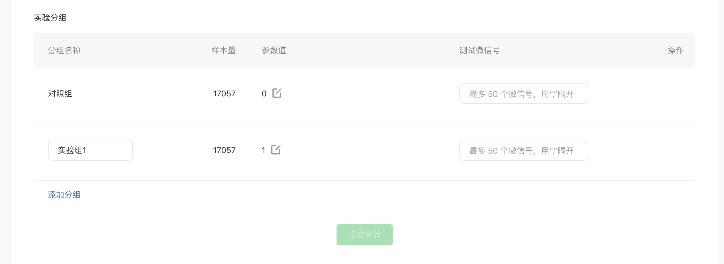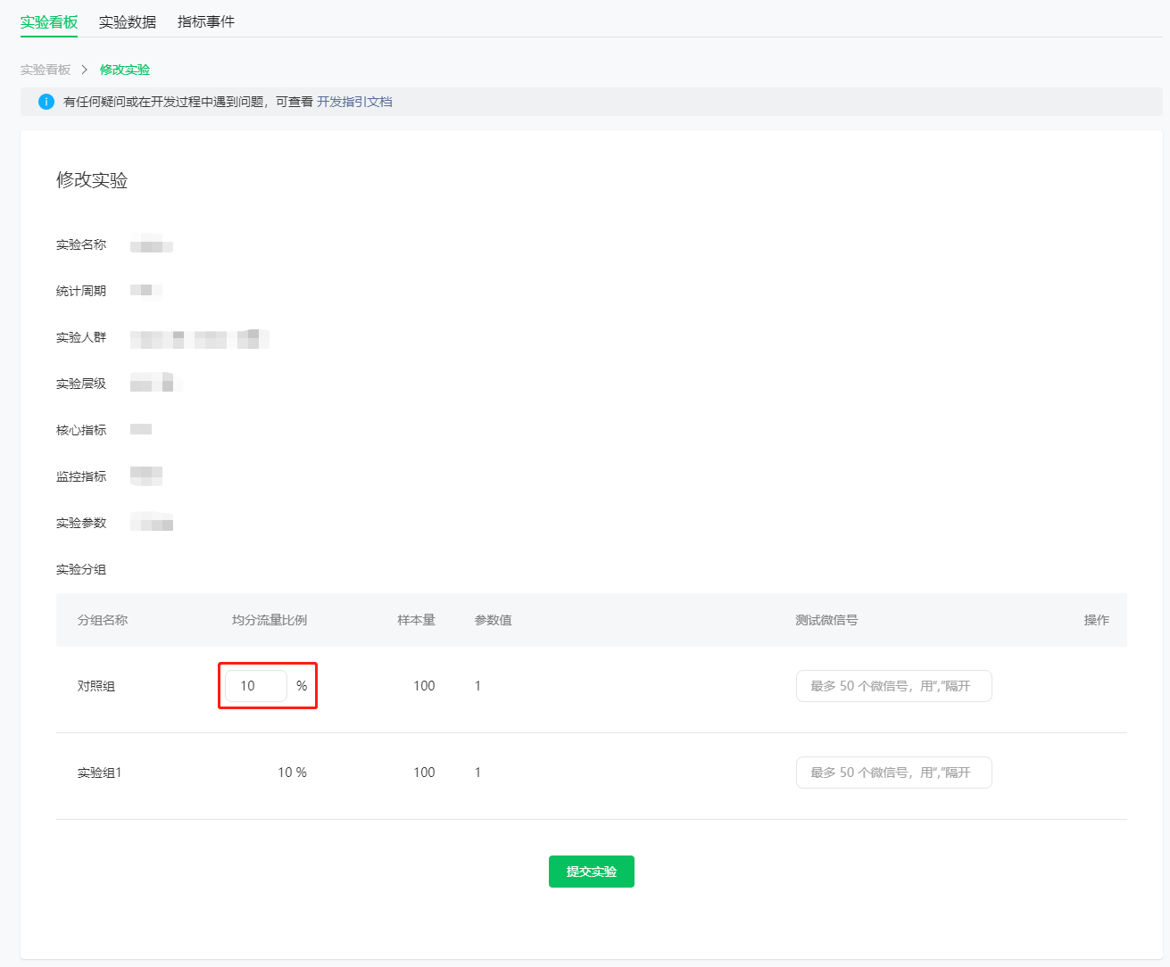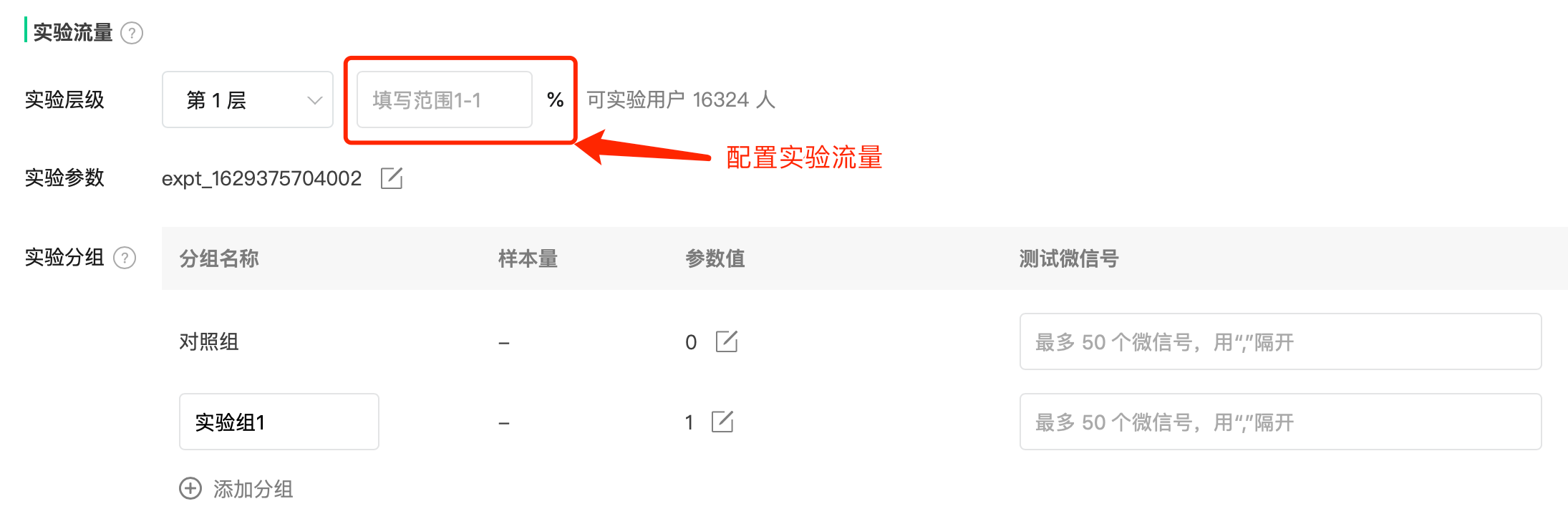 由于实验都是均分流量,故无需单独配置实验组流量了;