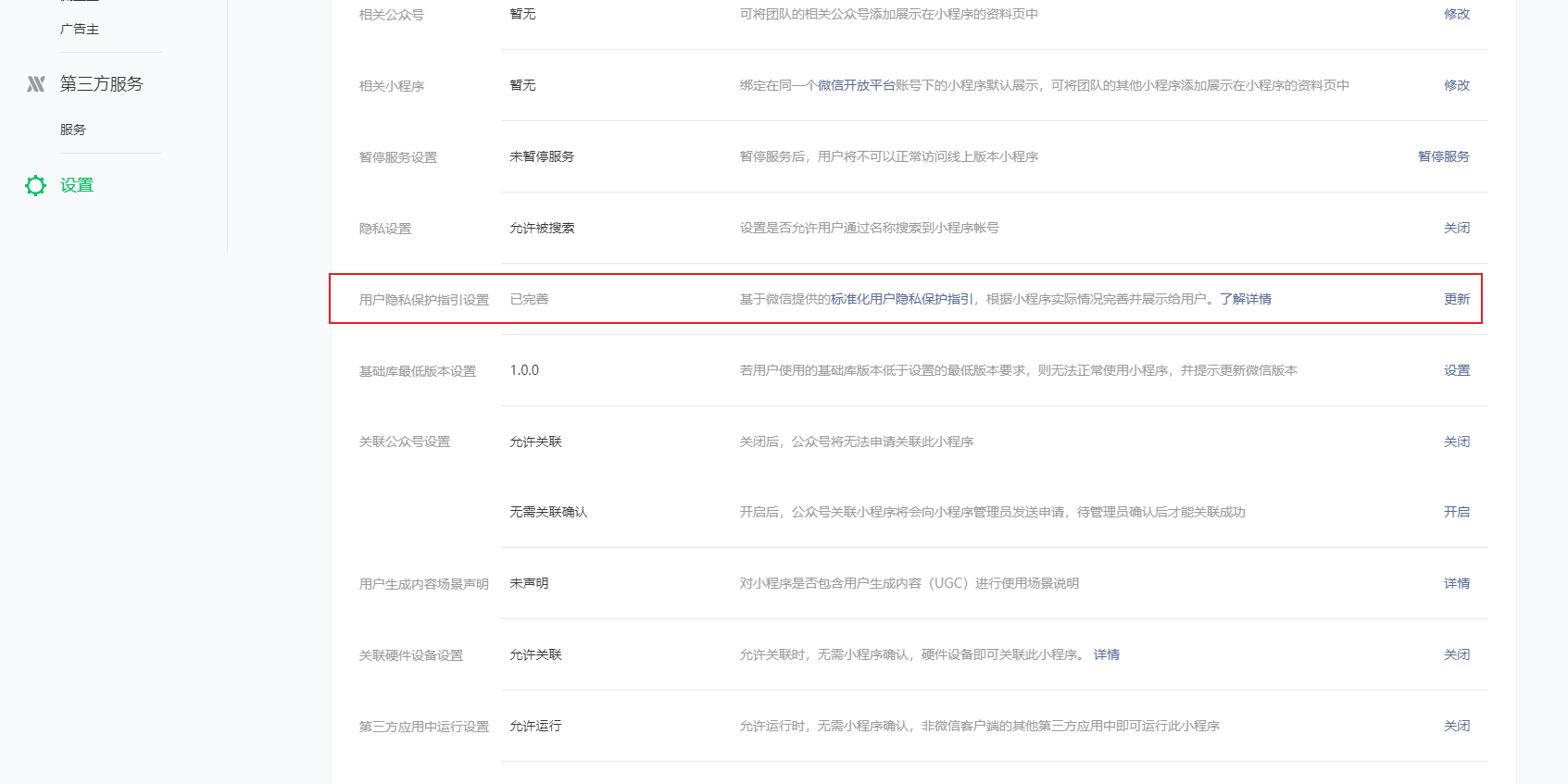 在小程序后台填写用户隐私协议