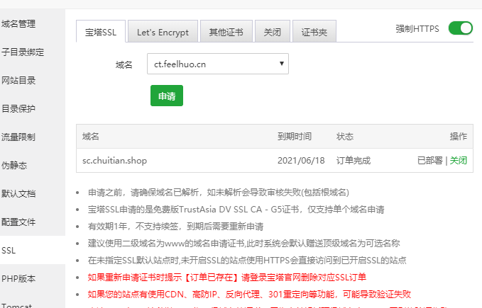 域名为:sc.chuitian.shop(PC端正常,小程序端不能正常访问) 还有一个域名ct.feelhuo.cn(这个域名可正常访问)