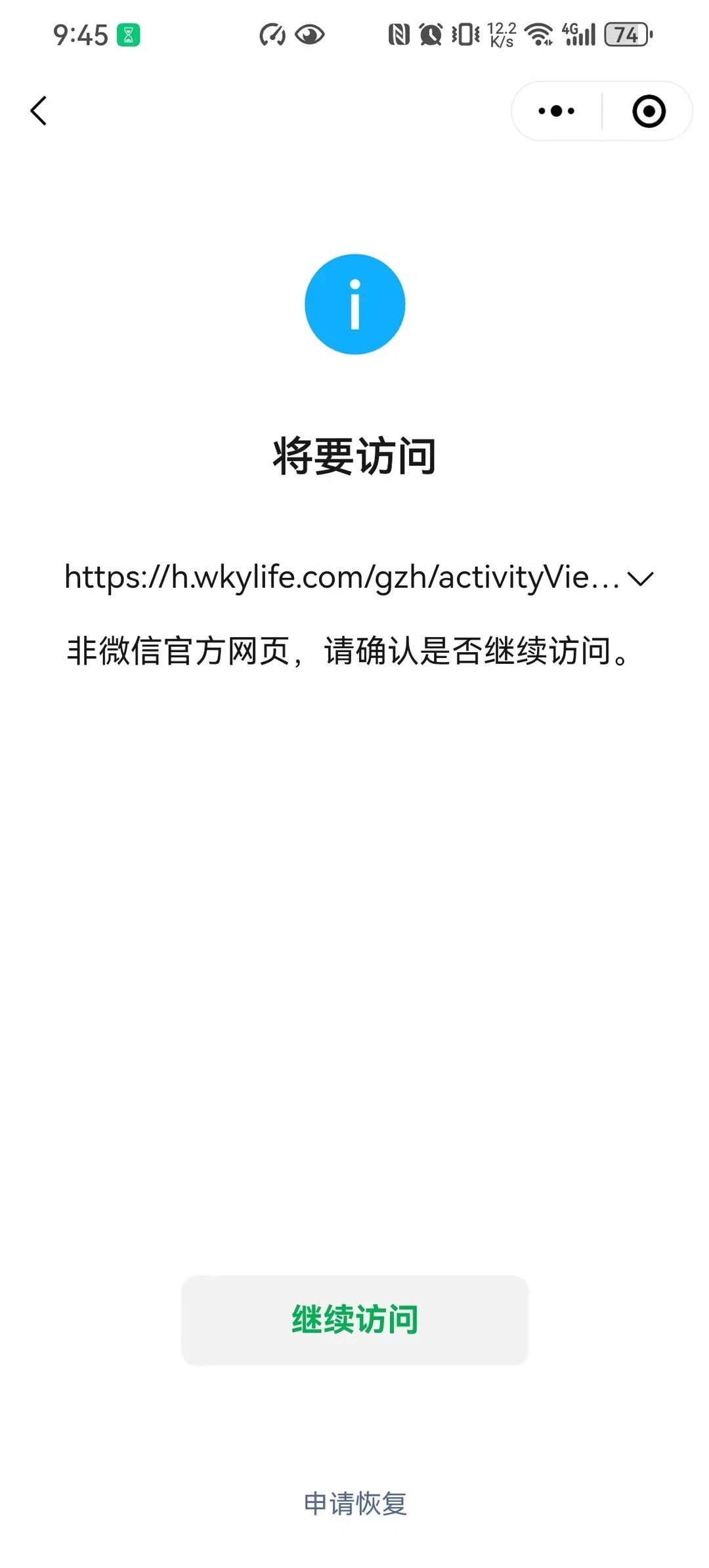 受限制访问链接,https://h.wkylife.com/gzh/activityView?id=3023&locationId=10001,这个问题出现很久了,影响了正常业务运行,麻烦尽快核实解决,急急急。