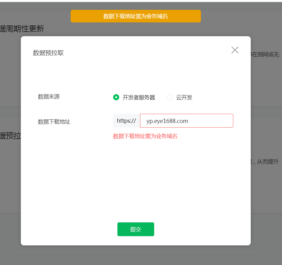 周期性拉取和数据预拉取填写业务域名后依然提示:“数据下载地址需为业务域名“