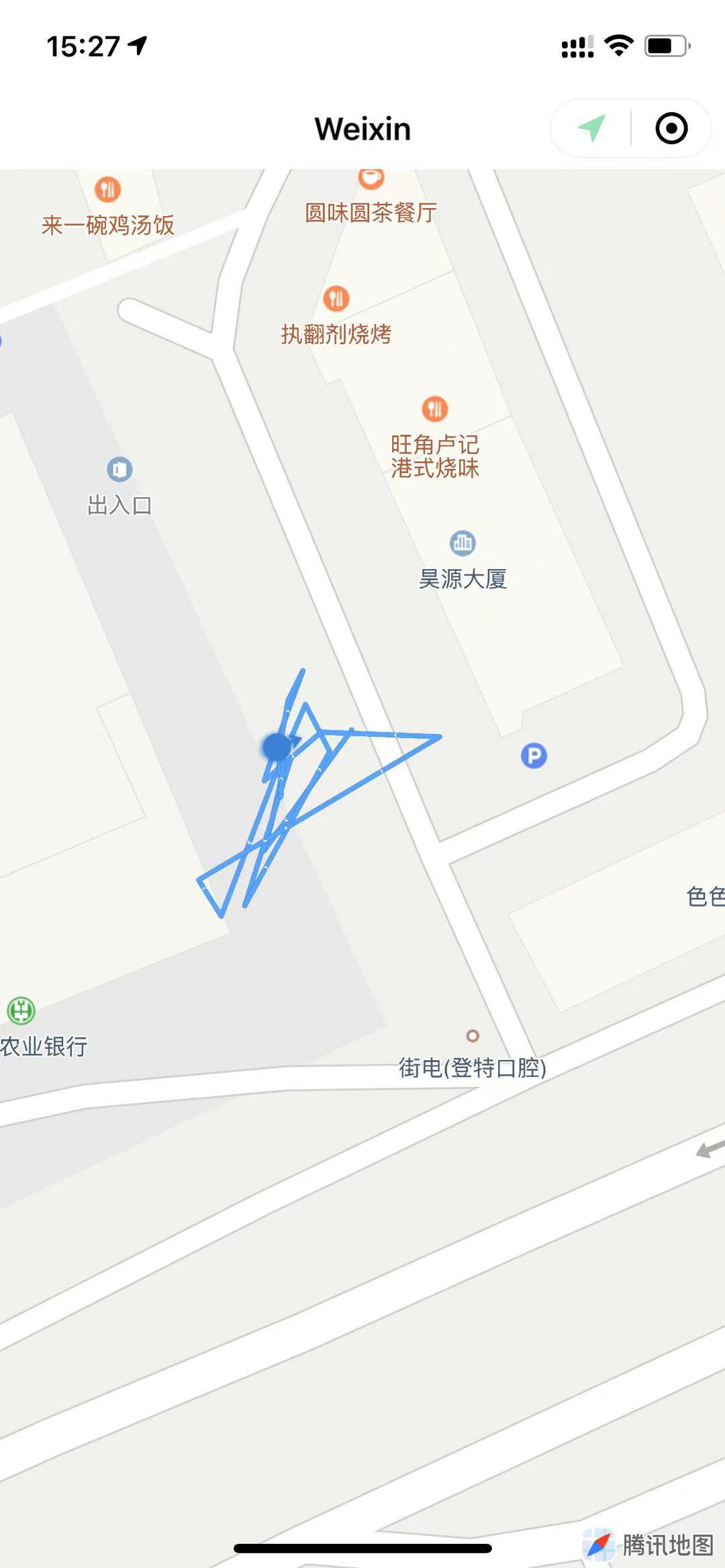 https://developers.weixin.qq.com/s/rYTJx9m17Fsb这个是dmeo可以使用 wx.startLocationUpdateBackground 配合 wx.onLocationChange来实时绘制路线,但是获取的会有偏差,我这个手机没移动过一分钟就成这个样子,这样子路线懂乱了!