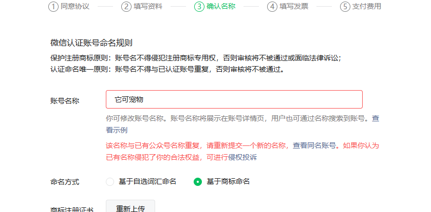 同主体公众号和小程序,小程序账号名称提示有同名账号,都为同主体公司账号