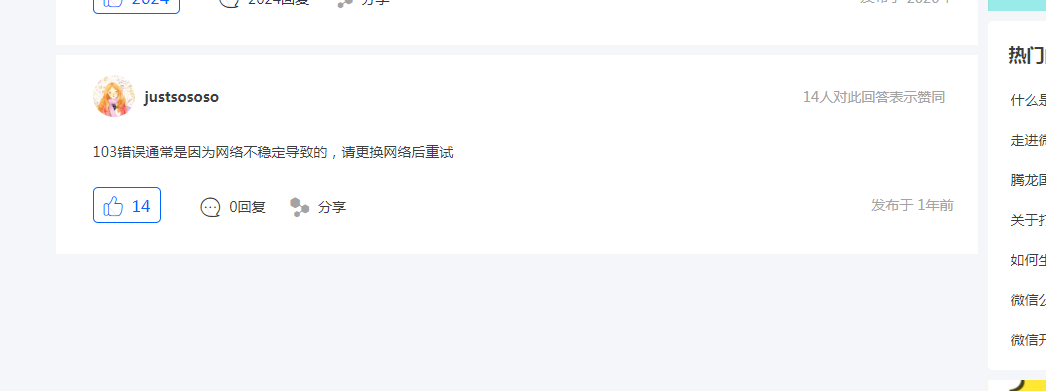 查了各种文档,均查不到103是什么错误,有没有官方人员解答一下