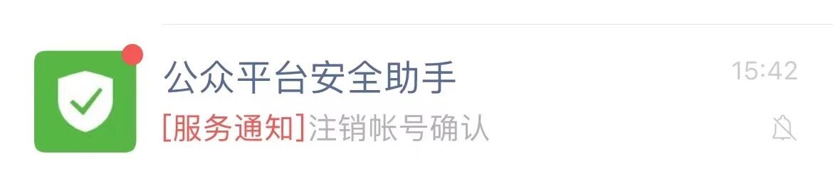 注销公众号,未收到推送的注销通知,麻烦二次推送下