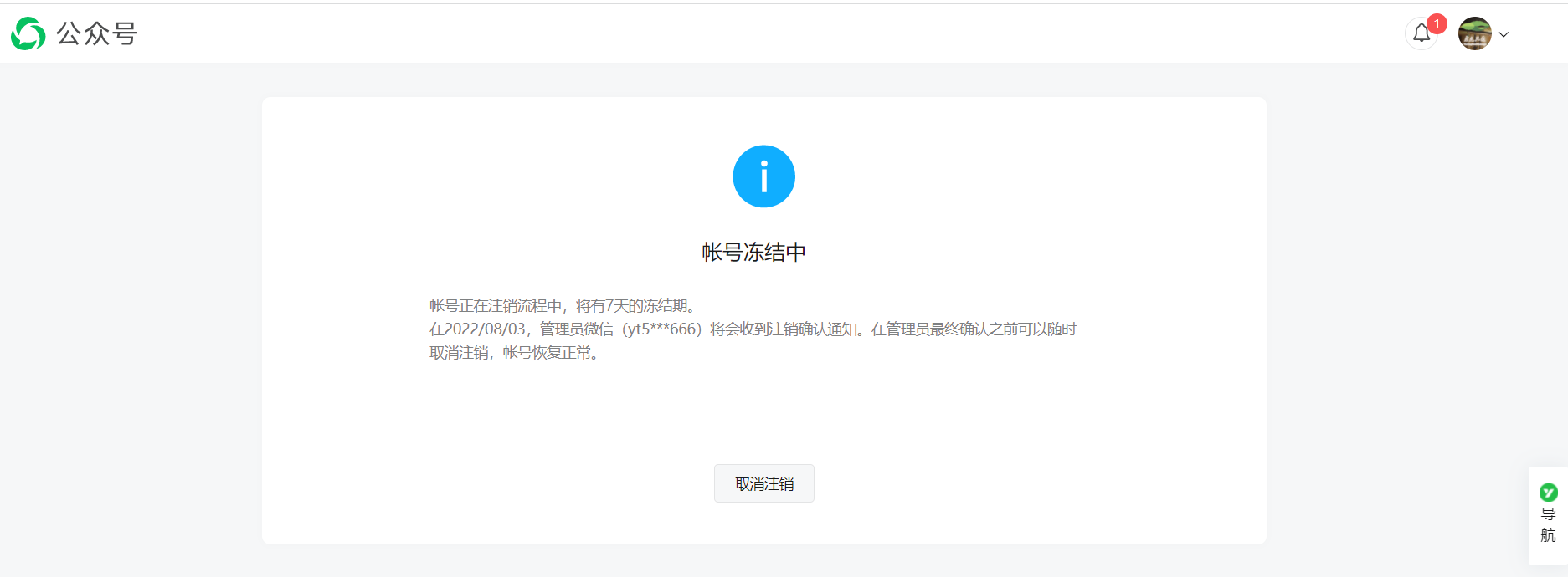 您好,公众号申请注销但一直没有收到推送给管理员得注销通知,这个要怎么操作啊?而且管理员已经关注公众平台安全助手
