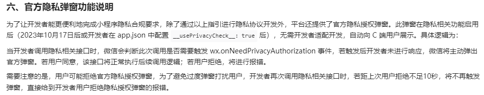 2、开发者也可以选择新的方案,自己不用开发,平台适配成官方的。但是1里面提到的自定义的部分都没有了,弹窗时间、UI、隐私协议等,全都是官方默认进行展示。