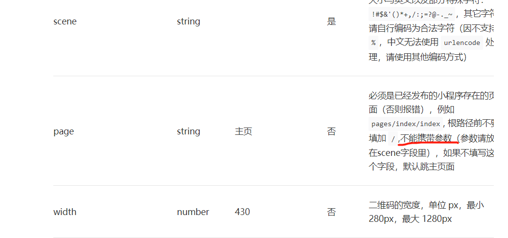 小程序码 page 参数需要参数时,可通过 scene 参数绑定映射方式。
